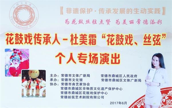 六月十日,是中国第十二个文化遗产日,也是更名后的第一个中国文化和自然遗产日。是日晚上,常德市文广新局、鼎城区政府联合主办的杜美霜花鼓戏、丝弦专场演出,在常德市群众文化馆举行。文化馆演出大厅,座无虚席。整个演出,高潮迭起、精彩纷呈,喝彩声声、掌声阵阵。演出结束,许多文艺工作者和观众涌向舞台,献上鲜花、欢快合影,表达敬意,送上祝福。许多朋友给我打来电话、发来微信,都说这个专场水平高、意义大,值得点赞。 杜美霜系国家二级演员,国家级非物质文化遗产常德花鼓戏省级传承人、常德市曲艺家协会副主席。 杜美霜自幼酷爱戏剧事业,1986年1月考入常德鼎城区花鼓戏剧团,师承石柏林老师、杨建娥老师。几十年来,刻苦训练,拜师求学,探索研究出了自己有鲜明特色的演唱风格和演绎技巧,在常德花鼓戏的演唱与表演上形成了自己独特风格,曾获全国“映山红”戏剧节优秀演员奖,文化部第七届“群星奖”金奖,第四届中国曲艺节一等奖,第五届中国曲艺节牡丹奖。1986年参与花鼓戏《嘻队长》进京演出深受专家一致好评。1994年花鼓戏《山里哥哥山里妹》参加全国映山红戏剧节获演出一等奖,饰演50多部传统剧目担任主要角色,深受观众赞扬。每年送戏下乡演出常德花鼓戏达100多场,塑造了很多鲜活的人物形象,深受农民喜欢。她个人的演唱专辑“几许桃花梦”、“又见桃花源”分别由中国科学文化音像出版社和中国唱片总公司出版发行。这些戏剧表演作品,成为了展示地域文化的精典。她还将自己多年来精心整理、挖掘、撰写和演唱的传统剧目汇编出版“常德花鼓戏集成”,成为一宝贵的精神财富。 国家一级剧作家黄士元先生高兴地对我说,我从艺六十年,举办个人专场的只听说过歌唱专场、演奏专场,地方戏曲个人专场,至少在常德还是首开先河。 这次专场演出时间节点选择得好。绚丽多姿的非物质文化遗产凝聚并延续着人类丰富多彩的智慧情感和价值观念,既是各国各民族优秀传统文化的生动载体,也是人类文化多样性和创造力的生动体现。这次专场演出,经过了一段时间的精心准备,选在中国第十二个文化遗产日、更名后的第一个中国文化和自然遗产日隆重亮相,独具匠心,具有重要意义。 这次专场演出体现了常德市对文化遗产的重视。活动由常德市政府文广新局和鼎城区人民政府联合主办的,承办单位和协办单位有6家,体现了上下同心、协调一致,共唱好戏,共襄盛举。这次专场演出体现了尊重人才,尊重艺术,对老一辈文艺工作者是鼓舞、是慰藉,对年轻文艺工作者是启迪、是激励。 早在上世纪的1986年,常德县花鼓戏剧团曾因电源失火,剧院被焚,演员无家可归,经济非常困难。剧团人员团结一心,克服难关,排演了许多深受农民喜爱的剧目,长年坚持在农村巡演,受到了国家文化部和湖南省政府的奖励表彰。“嘻队长”剧组还被文化部特邀于1986年6月晋京到中南海怀仁堂作汇报演出,受到党和国家领导同志的观看和赞赏,黄士元及《嘻队长》剧组代表还在首都戏剧界代表集会上作了经验介绍。三十一年过去,鼎城区花鼓戏剧团,依然红旗不倒,本色未变,这次杜美霜的专场演出无疑是具有光荣传统的鼎城区花鼓戏剧团、常德丝弦院奋斗成果的集体展示。 著名作家水运宪说:杜美霜女士是常德本土杰出的表演艺术家,多年来,凭籍深厚扎实的艺术功底和勤奋务实的艺术态度,不断地将本土文化推陈出新,融入高雅艺术的殿堂,攀登一个又一个新的高峰,令人很受鼓舞。杜美霜个人专场演出,无疑是常德文艺界一个值得欢欣鼓舞的盛大节日。 中国电影家协会副主席康健民发来贺信:杜美霜个人专场演出,无疑是常德文艺界一个值得欢欣鼓舞的盛大节日。常德花鼓戏和常德丝弦,是中国文艺百花园里两朵备受人喜爱的鲜花,她植根于人民中间,在继承中创新,创作了大量的好作品,也推出了不少新人才。作为常德花鼓戏传承人的杜美霜,有良好的天赋,也凭着不懈的努力,在这两个领域里取得了骄人的成绩。作为家乡人,我对常德文化艺术的创新精神表示钦佩,对杜美霜等一批中青年艺术家的成就感到骄傲,我更热切地盼望着家乡的社会、文化事业有更好、更快的发展。 水运宪、康健明都是从常德走出去的文学艺术专家、重量级的人才,两位的来函来电饱含深情、充满激情,他们的祝贺、赞赏和寄托的希望,更说明,这次专场演出值得点赞了。